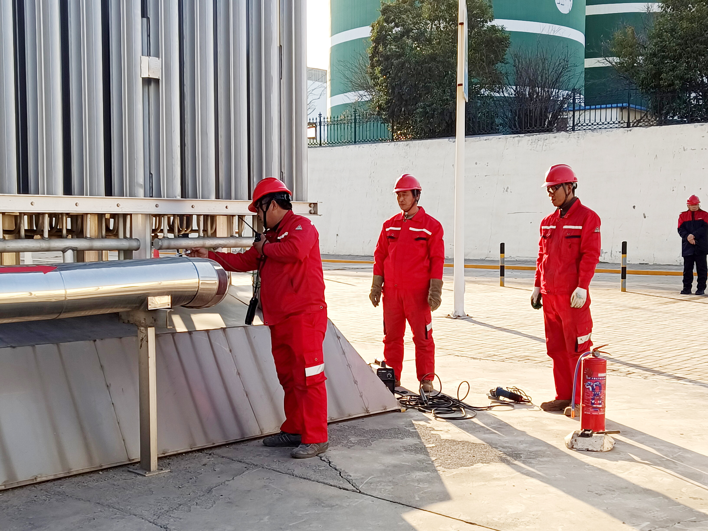 演练模拟在执行调度令向次高压管网供气期间,次高压气化区一组西侧气化器进口法兰焊缝开裂导致LNG泄漏,现场未引发火灾及人员伤亡。演练全程围绕接警启动、现场控制、应急抢修、恢复供气等四个环节展开,过程紧张有序、响应迅速、操作规范,各应急小组协同密切,联动迅速。